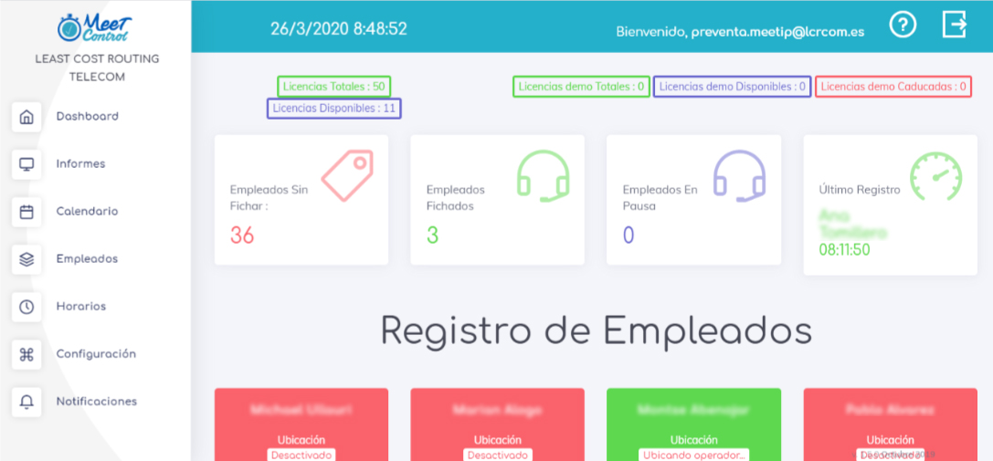 Te ofrecemos el servicio de fichadas Meet Control que te permitirá hacer un control exhaustivo de la jornada laboral. Este producto no requiere de la instalación de ningún equipo.