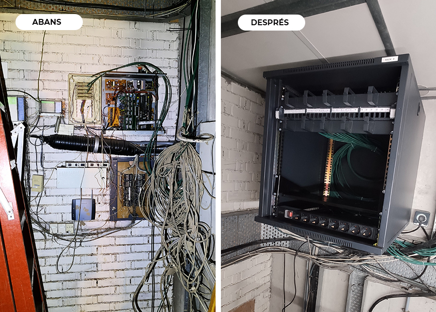 Després de les fortes inundacions del temporal Gloria va tocar retirar, netejar i reparar totes les destrosses que es van ocasionar a les comunicacions. Canviar el rack i col·locar-lo en alçada per evitar futures inundacions. Fer-hi arribar electricitat. Substituir tot el cablejat afectat per l'aigua als diferents punts del pavelló. Instal·lació de nous punts i posada en marxa.