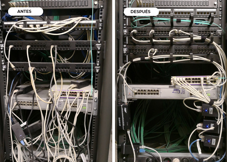 Con el traslado de las oficinas en una planta superior, se han cableado los nuevos puntos de trabajo (con red y potencia) y se ha hecho llegar la fibra al nuevo rack. Instalación de nueva canalización, montar el rack, paneles, corriente y parchear. Una vez terminado el trabajo, puesta en marcha y comprobación de que todo funcione.